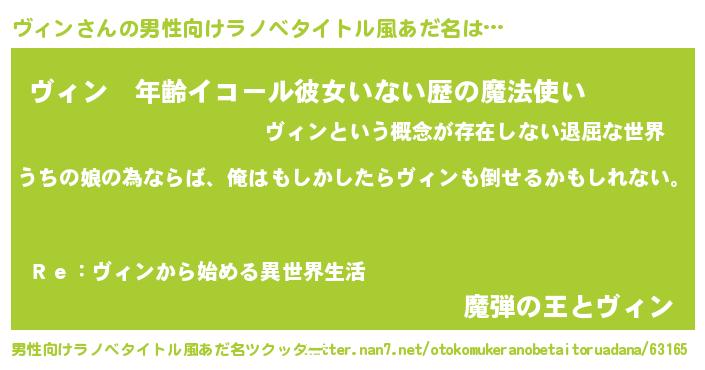 | 女子向けラノベタイトル風あだ名 | 『ヴィン伯爵の花嫁』『闇のヴィン』 |
