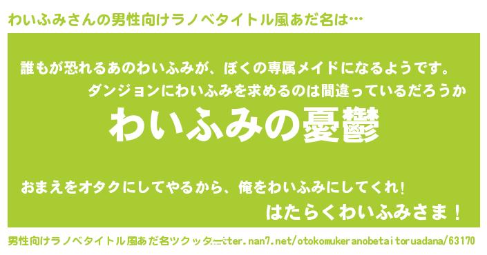 | 女子向けラノベタイトル風あだ名 | 『(仮)わいふみのやんごとなき事情』 |