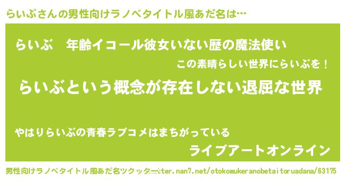 らいぶさんの男性向けラノベタイトル風あだ名をツクッター!