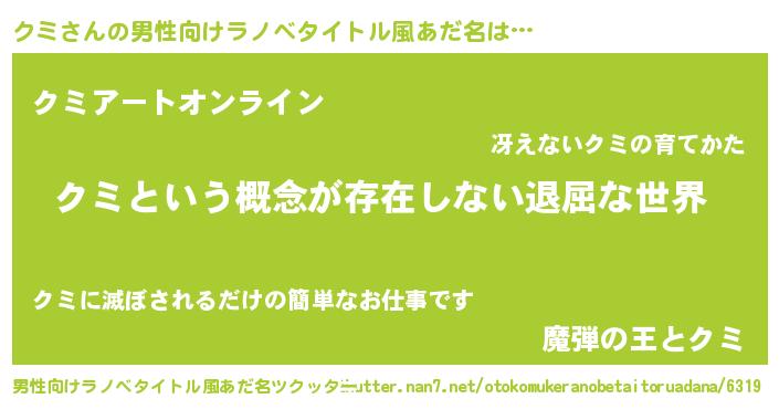 | 女子向けラノベタイトル風あだ名 | 『異世界で失敗しない100のクミ』 |
