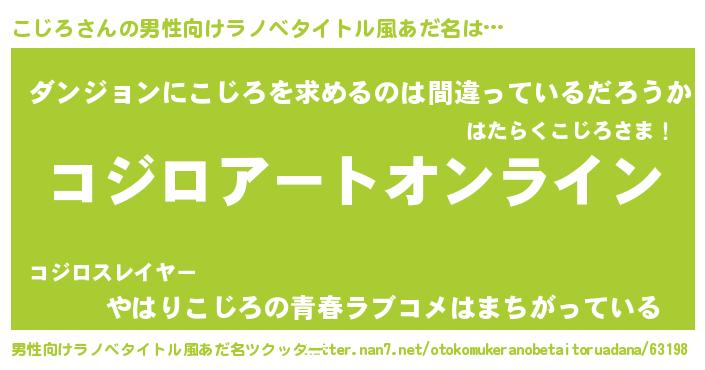 | 胡散臭い通販商品みたいなあだ名 | 『億万長者になれるブレスレット…その名も「こじろ」』 |