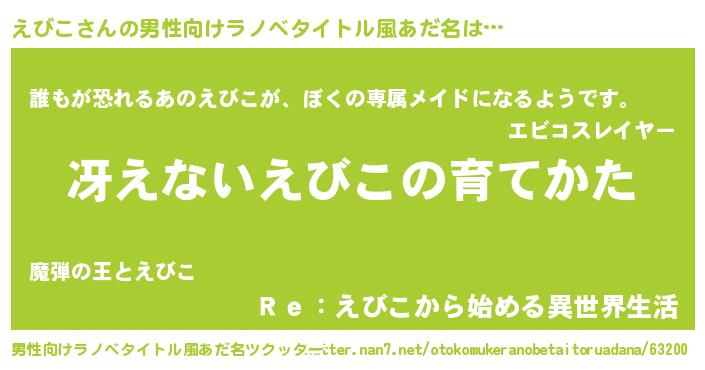 | 胡散臭い通販商品みたいなあだ名 | 『来世でも幸せになれる健康食品…その名も「えびこ」』 |