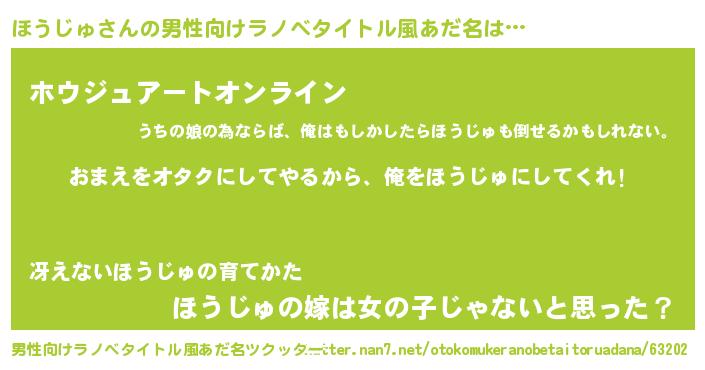 | 女子向けラノベタイトル風あだ名 | 『ほうじゅ夫妻のなれそめ』 |