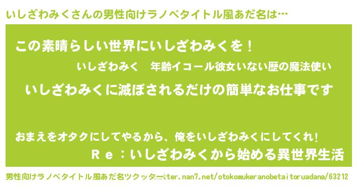 | 意味不明あだ名 | 『住所不定無職いしざわみく(13歳)』 |