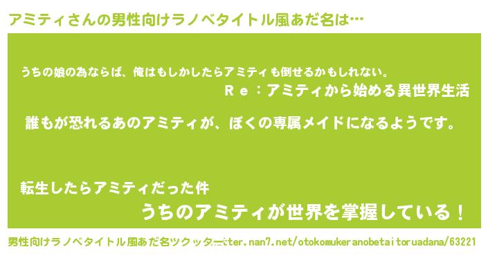 | 意味不明あだ名 | 『永久保存アミティ』『自称アミティ』 |