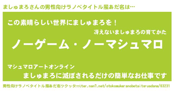 | 女子向けラノベタイトル風あだ名 | 『死神ましゅまろの再婚』 |
