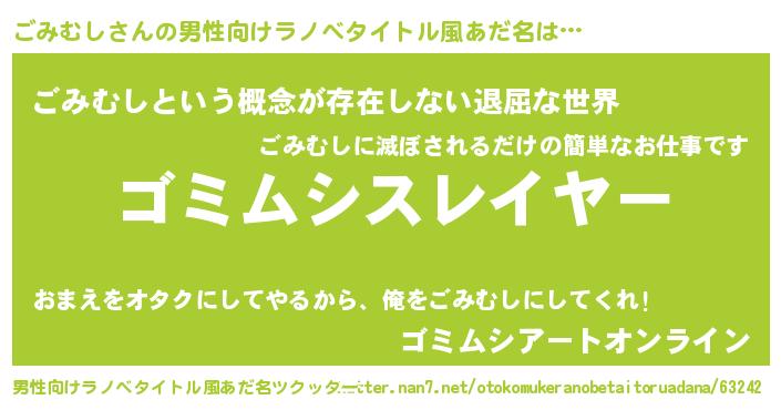 | 伝説のあだ名 | 『聞きしに勝る勇者ごみむし』 |