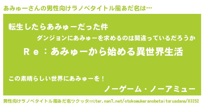 | 意味不明あだ名 | 『自称あみゅー』『もやし科あみゅー属』 |