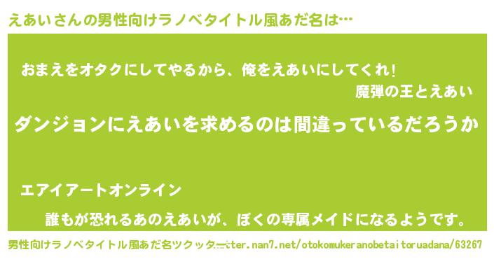 | 女子向けラノベタイトル風あだ名 | 『えあいは平凡を望む』 |