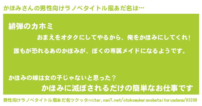| ヘコむあだ名 | 『かほみ(遠い目)』『かほっ子』 |