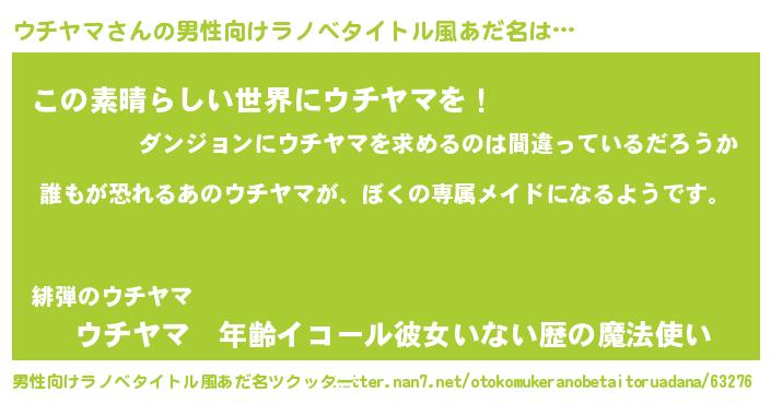 | 女子向けラノベタイトル風あだ名 | 『異世界でカフェウチヤマを開店しました。』 |