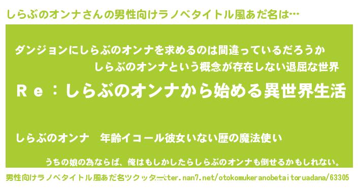 | 女子向けラノベタイトル風あだ名 | 『闇のしらぶのオンナ』 |