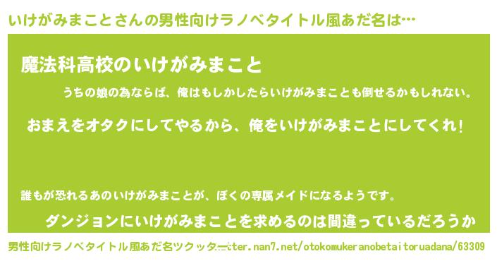 | 女子向けラノベタイトル風あだ名 | 『いけがみまこと夫妻のなれそめ』 |