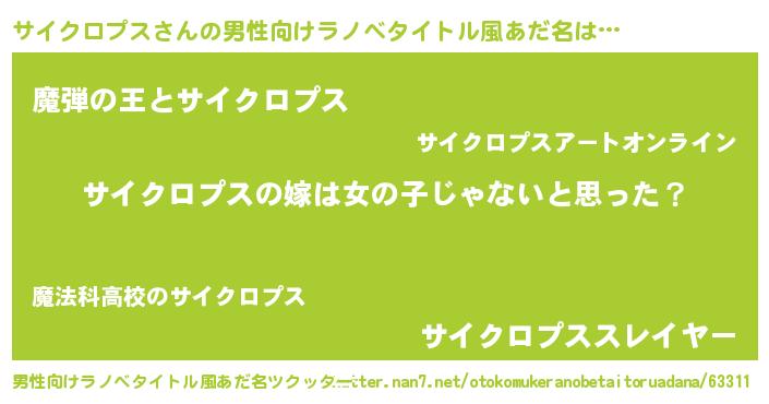 | 女子向けラノベタイトル風あだ名 | 『サイクロプス様がみてる』 |