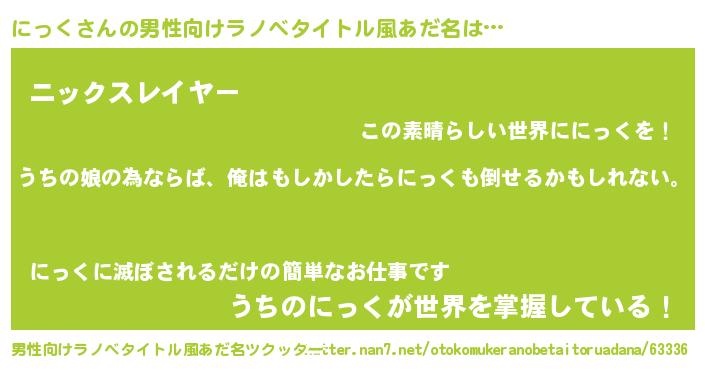 | 胡散臭い通販商品みたいなあだ名 | 『運命の人と巡り会える高級そうな壺…その名も「にっく」』 |
