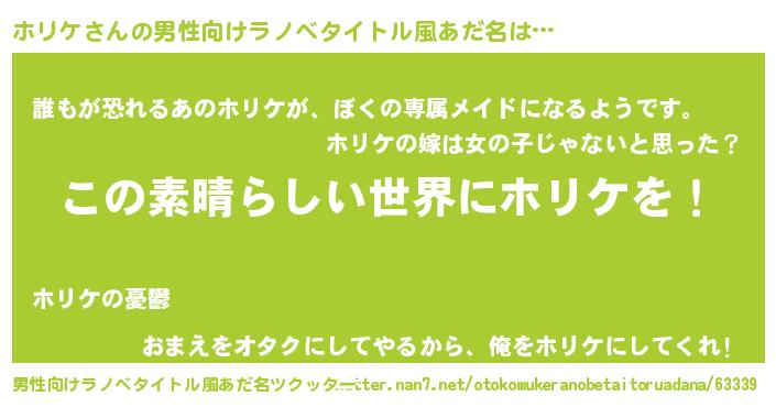 | 意味不明あだ名 | 『住所不定無職ホリケ(11歳)』 |