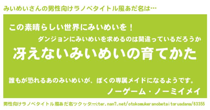| ヒーロー風カッコイイあだ名 | 『仮面ミイダー』『慈愛の使者みいめい』 |