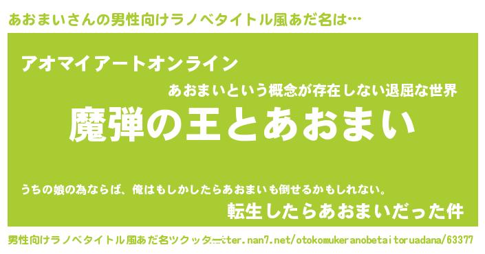| 女子向けラノベタイトル風あだ名 | 『あおまいが死なない童話 林檎のあおまいの診療簿』 |