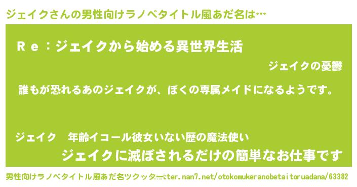 | ヒーロー風カッコイイあだ名 | 『ネオジェイク』『最強戦士ジェイク』 |