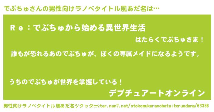 | ファンタジー風あだ名 | 『デブディッシュ』『ゼデブトゥ』 |