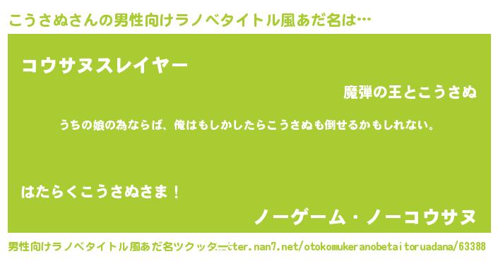 | 女子向けラノベタイトル風あだ名 | 『こうさぬの婚約者』『こうさぬ恋絵巻』 |