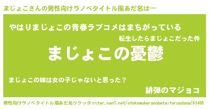 | 女子向けラノベタイトル風あだ名 | 『(仮)まじょこのやんごとなき事情』 |