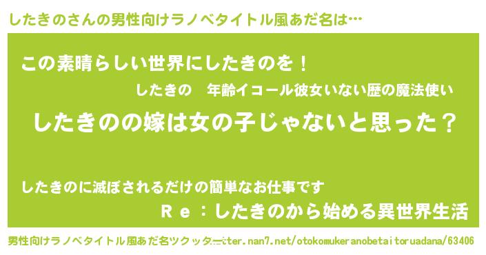 | 女子向けラノベタイトル風あだ名 | 『したきの様がみてる』『闇のしたきの』 |