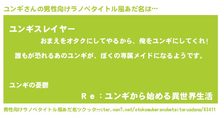 | 女子向けラノベタイトル風あだ名 | 『異世界でカフェユンギを開店しました。』 |