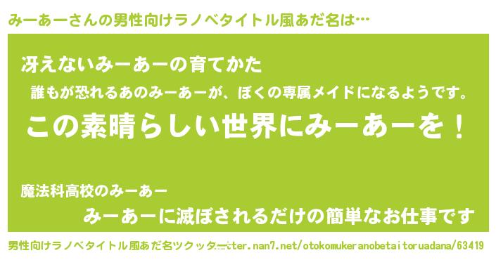 | 意味不明あだ名 | 『住所不定無職みーあー(13歳)』 |