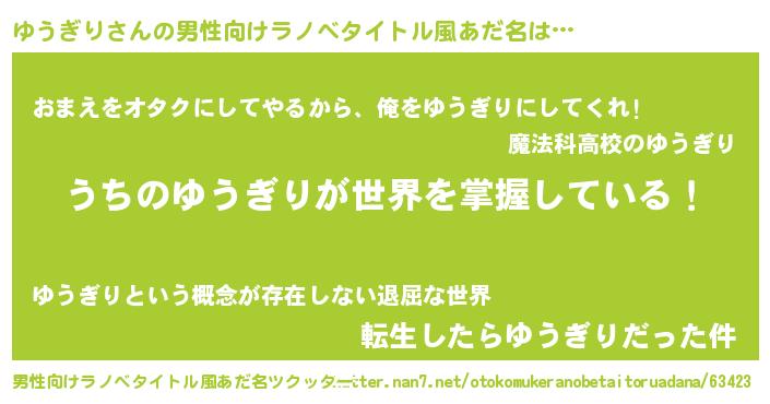 | ヘコむあだ名 | 『ゆうぎり(遠い目)』『ゆうっふぃ~』 |
