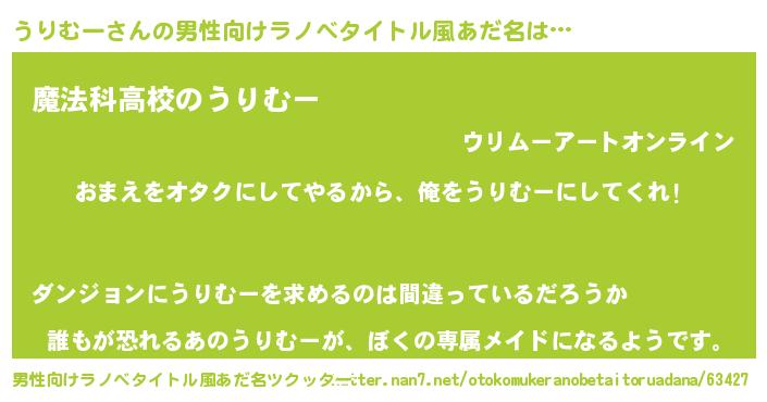 | 女子向けラノベタイトル風あだ名 | 『うりむー恋絵巻』 |