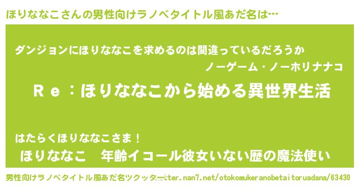 | 胡散臭い通販商品みたいなあだ名 | 『テレビで話題のアガリクス…その名も「ほりななこ」』 |