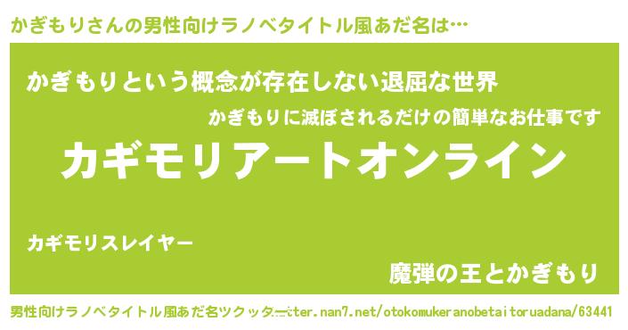 | 胡散臭い通販商品みたいなあだ名 | 『億万長者になれる霊験あらたかなお札…その名も「かぎもり」』 |
