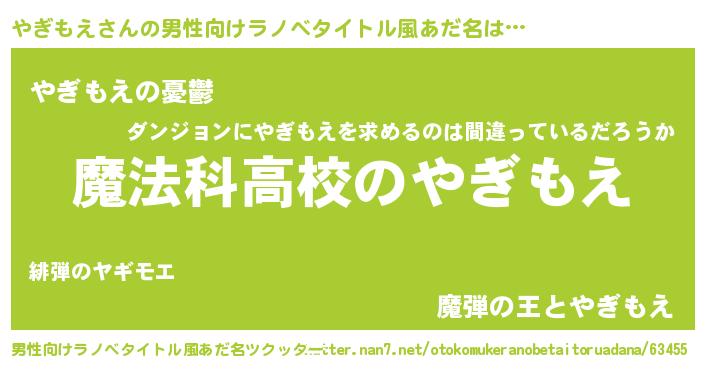 | 女子向けラノベタイトル風あだ名 | 『やぎもえアンティーク』 |