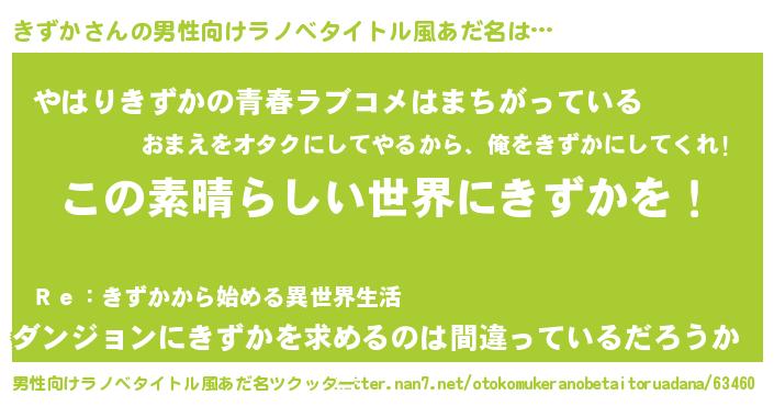 | 胡散臭い通販商品みたいなあだ名 | 『あなたにだけ特別に提供する100年もののヴィンテージワイン…その名も「きずか」』 |