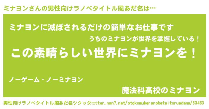 | 意味不明あだ名 | 『住所不定無職ミナヨン(1歳)』 |