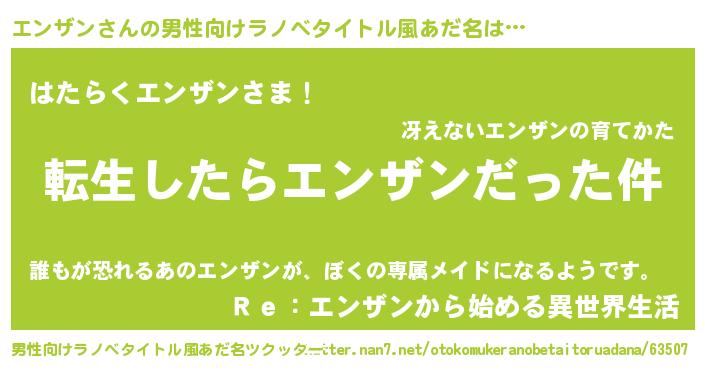 | 女子向けラノベタイトル風あだ名 | 『エンザンの玉の輿計画!』 |
