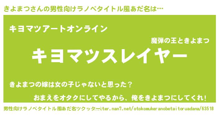 | 女子向けラノベタイトル風あだ名 | 『婚約破棄系悪役きよまつに転生したので、保身に走りました。』 |