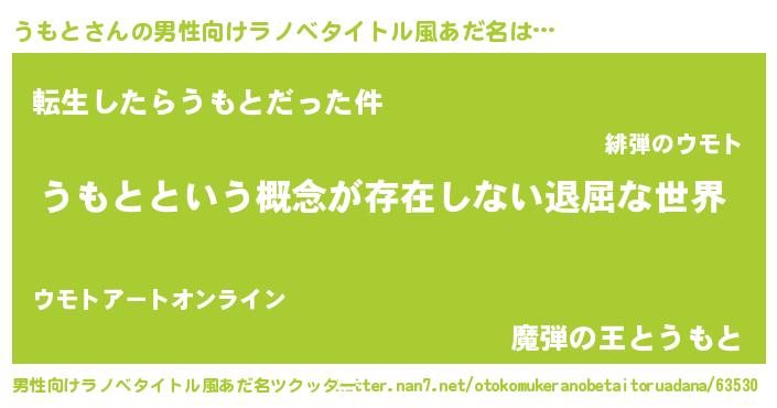 | 胡散臭い通販商品みたいなあだ名 | 『来世でも幸せになれる水素水…その名も「うもと」』 |