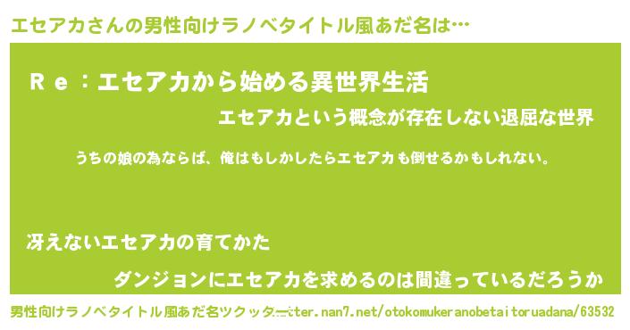 | ファンタジー風あだ名 | 『エターナルエセアカー』『ゼエセトゥ』 |