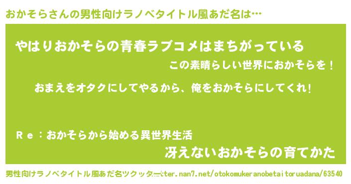 | 女子向けラノベタイトル風あだ名 | 『おかそら恋絵巻』『闇のおかそら』 |