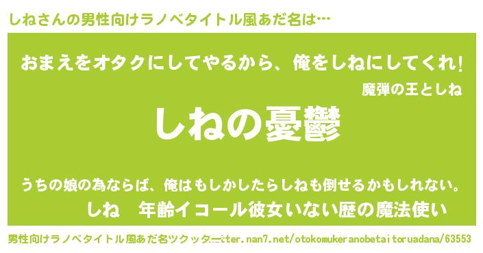 | 女子向けラノベタイトル風あだ名 | 『(仮)しねのやんごとなき事情』 |