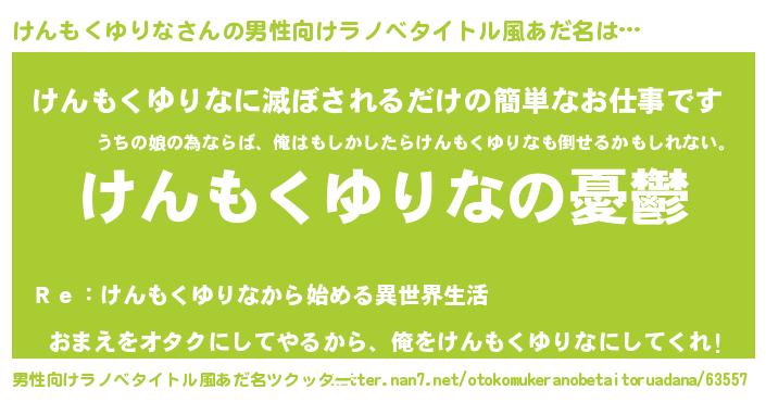 | 女子向けラノベタイトル風あだ名 | 『(仮)けんもくゆりなのやんごとなき事情』 |
