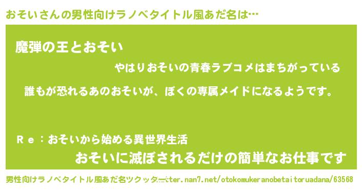 | 女子向けラノベタイトル風あだ名 | 『異世界でカフェおそいを開店しました。』 |