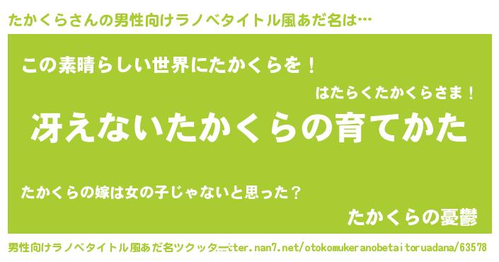 | 女子向けラノベタイトル風あだ名 | 『男装たかくらの憂鬱な任務』 |