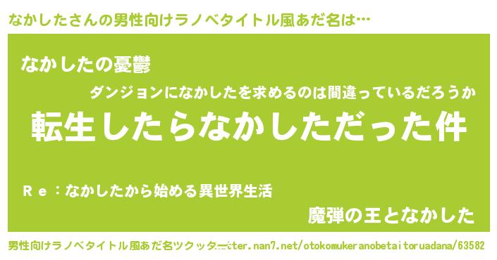 | 胡散臭い通販商品みたいなあだ名 | 『モテモテ間違いなしブレスレット…その名も「なかした」』 |