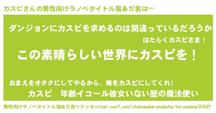 | 胡散臭い通販商品みたいなあだ名 | 『あなたにだけ特別に提供する世界で10本だけ現存している希少なブランデー…その名も「カスピ」』 |