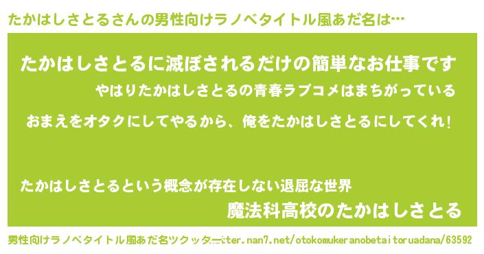 | 女子向けラノベタイトル風あだ名 | 『たかはしさとる夫妻のなれそめ』 |