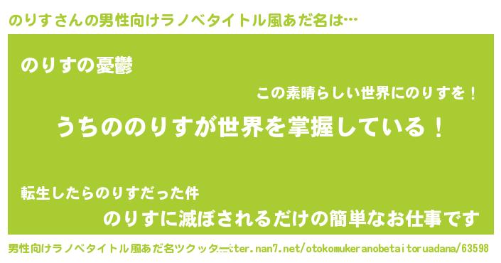 | 胡散臭い通販商品みたいなあだ名 | 『億万長者になれる霊験あらたかなお札…その名も「のりす」』 |