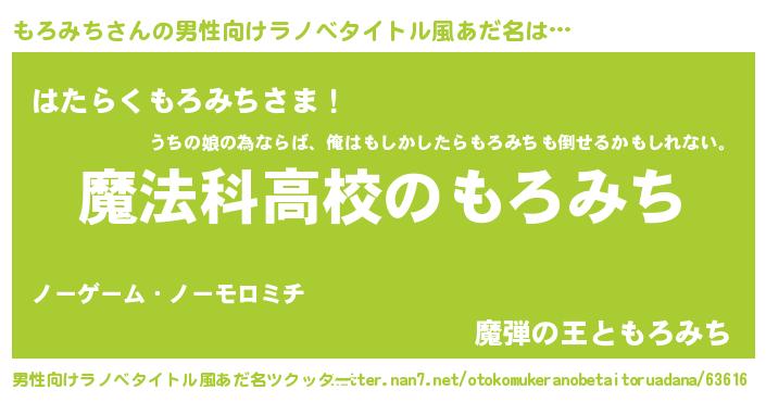 | 女子向けラノベタイトル風あだ名 | 『もろみちなんてお断りですっ。』 |